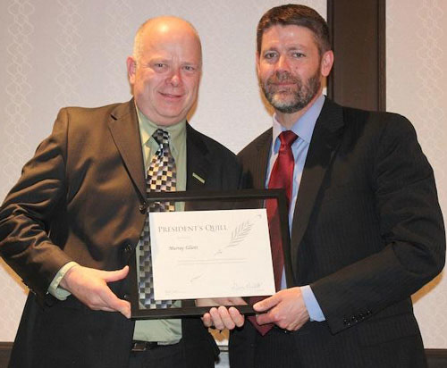 And so tonight, it gives me great pleasure to present the President’s Quill Award to Murray Elliott, in recognition of his distinguished service to the newspaper industry, as a director of the Canadian Community Newspapers Association.